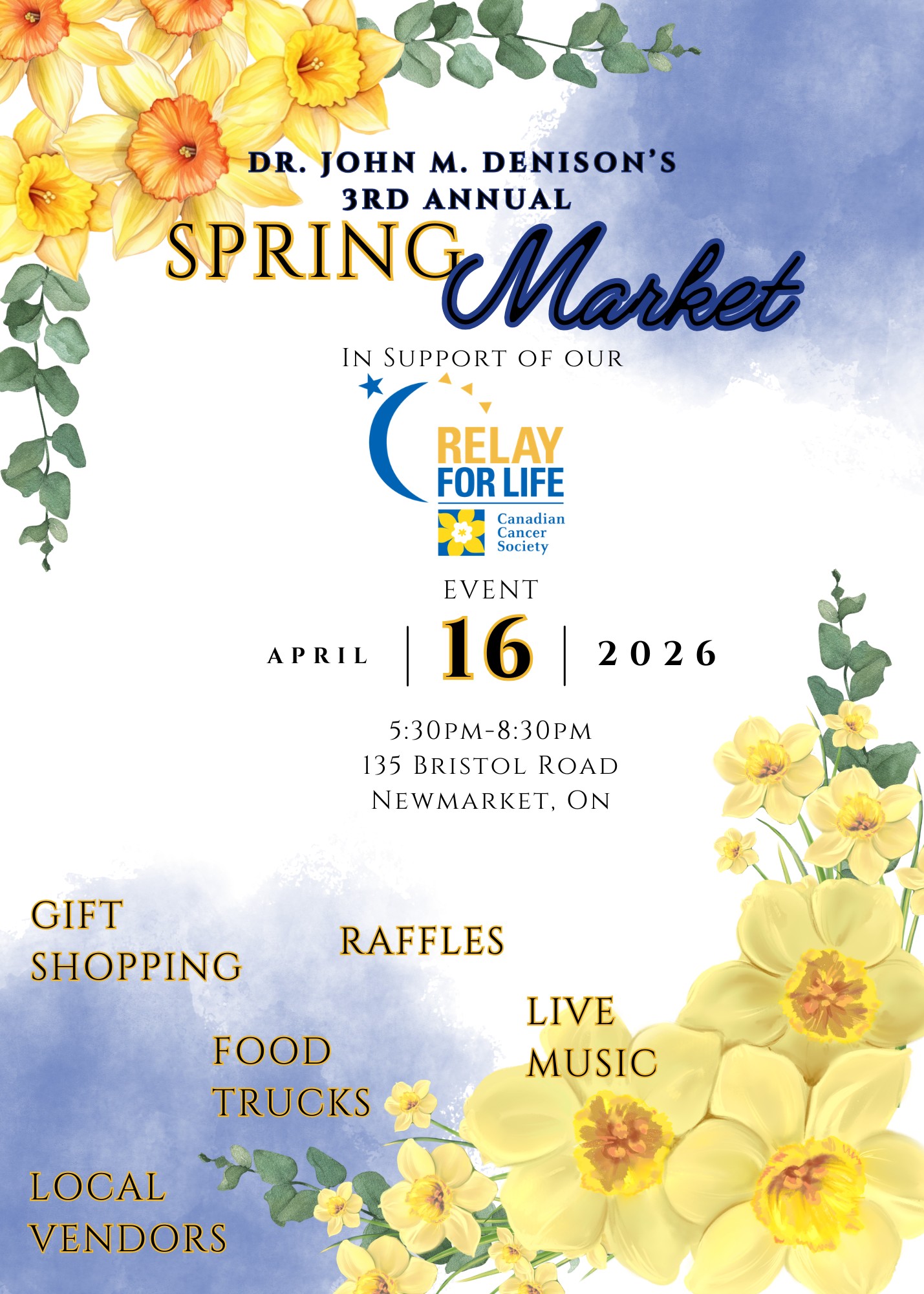 Please come to our Spring Market on April 16th, 2026. All are invited! The event starts at 5:30 PM. There will be different vendors and activities during this evening - this event will help support our Relay for Life event costs for our students.